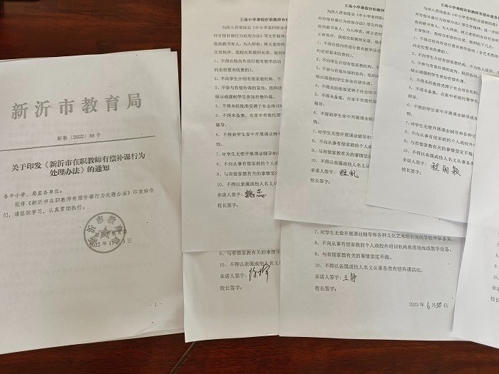 全体教师集中学习了《新沂市在职教师有偿补课行为处理办法》等文件,深刻认识到了恪守师德规范,廉洁从教,为人师表的重要性。随后,徐楠校长就《暑假在职教师有偿补课责任书》做了深入解读,告诫全体教师一定要坚决抵制有偿补课行为。全体教师在责任书上签字,郑重承诺依法执教、规范从教行为,以“四有”好教师的标准严格要求自己。教师们签下的,不仅仅是自己的名字,更是一份责任和一份承诺。